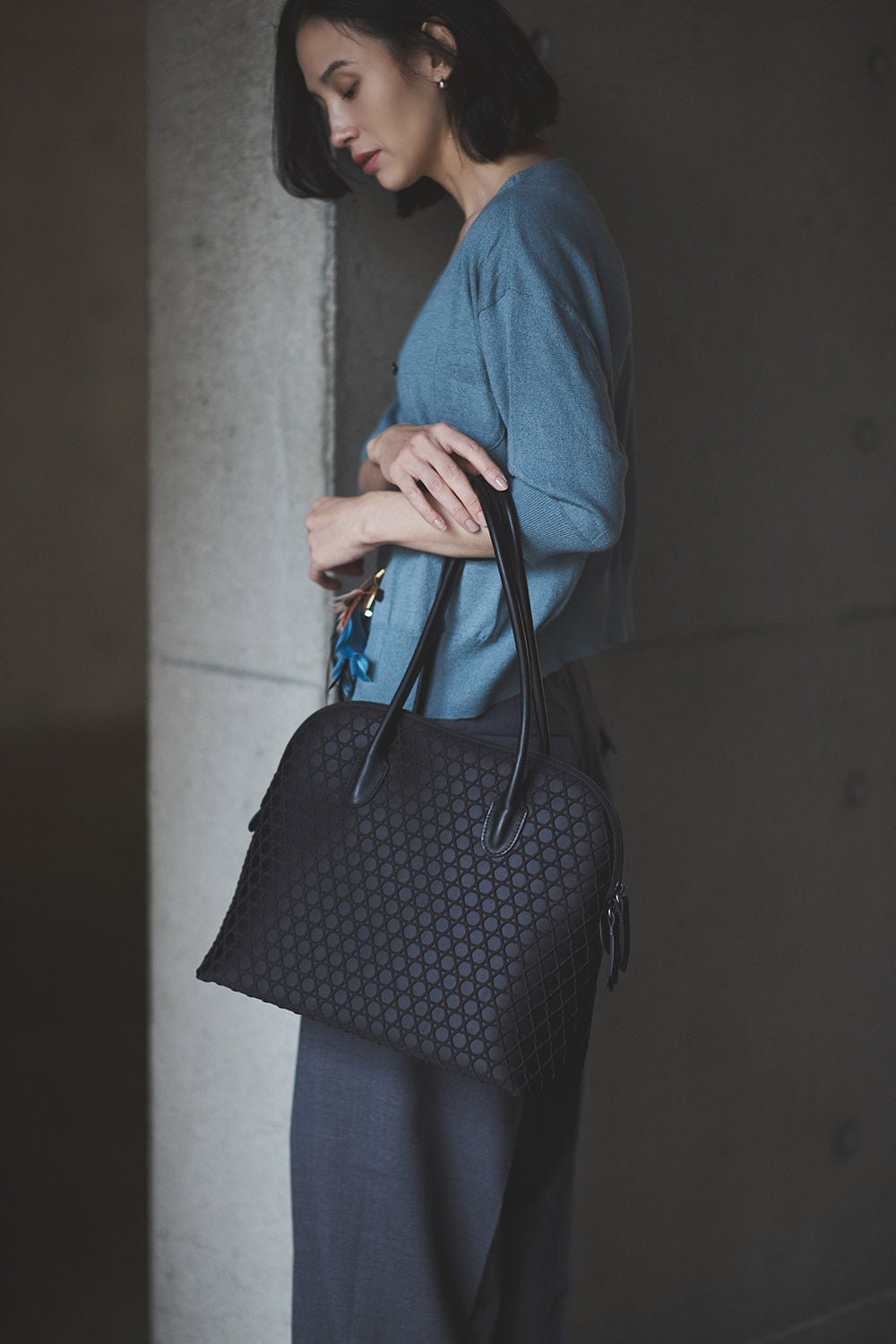 WABI-SABIの文化をはじめとする日本の繊細な価値観を重んじながら、その素晴らしい伝統を未来へとつなげるために、いまラクーオが目指すもの。それは、うつくしく静かなたたずまい。万物に神は宿るとし、すべてのものを等しく見つめるこころのあり方や視線を落とし込み、ミニマルに表現されるモチーフを使用したものたちは、現代に寄り添うものであり、そして後世へ残るものであること。人と人とのつながりや関係が非常に緊密で混沌とする現代に、ブランドの核として掲げるクロス柄には、“絆”や“人と人との交わりを大切にしたい想い”を込めました。