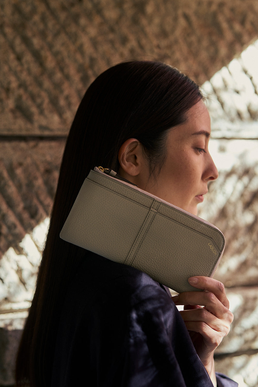 WABI-SABIの文化をはじめとする日本の繊細な価値観を重んじながら、その素晴らしい伝統を未来へとつなげるために、いまラクーオが目指すもの。それは、うつくしく静かなたたずまい。万物に神は宿るとし、すべてのものを等しく見つめるこころのあり方や視線を落とし込み、ミニマルに表現されるモチーフを使用したものたちは、現代に寄り添うものであり、そして後世へ残るものであること。人と人とのつながりや関係が非常に緊密で混沌とする現代に、ブランドの核として掲げるクロス柄には、“絆”や“人と人との交わりを大切にしたい想い”を込めました。