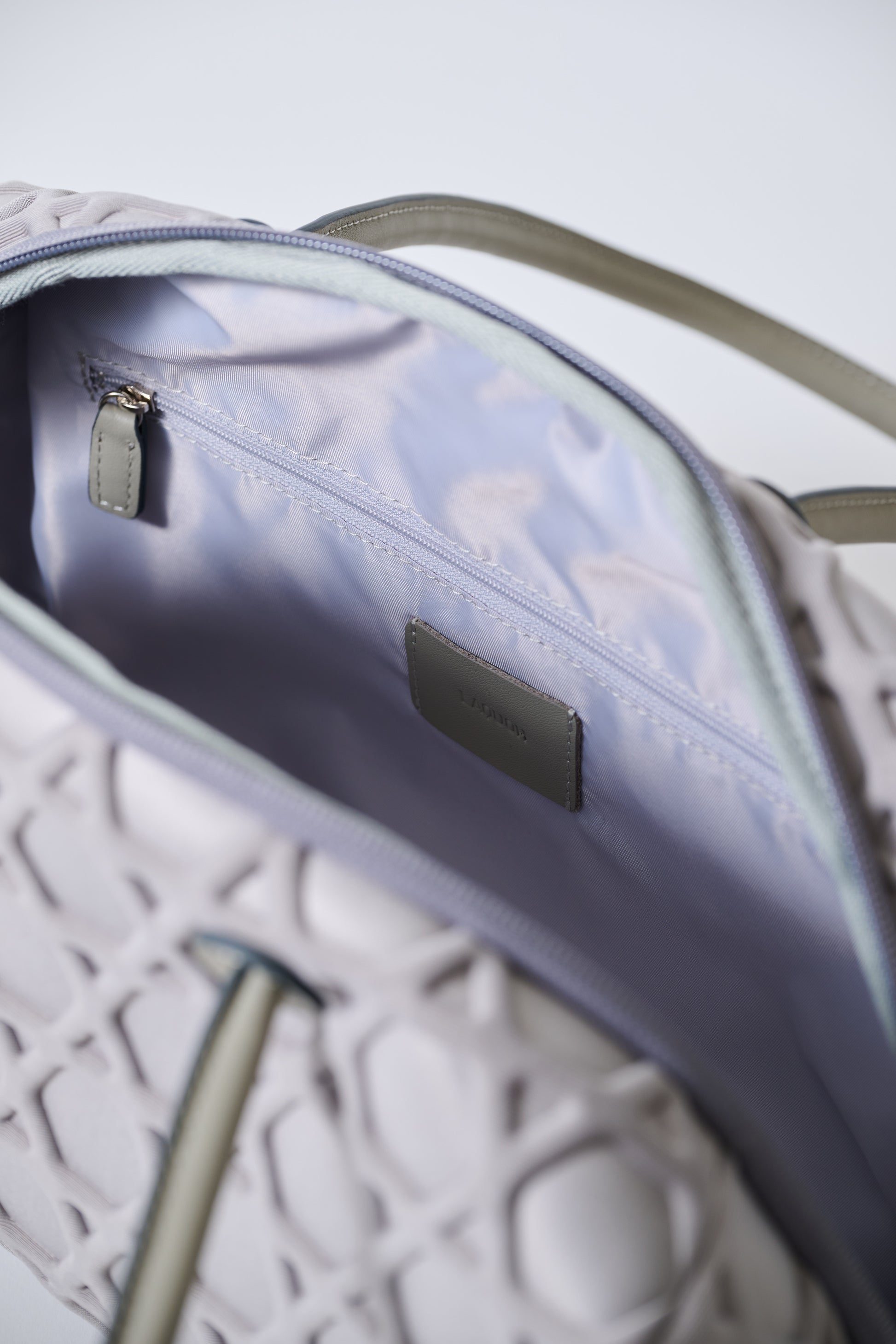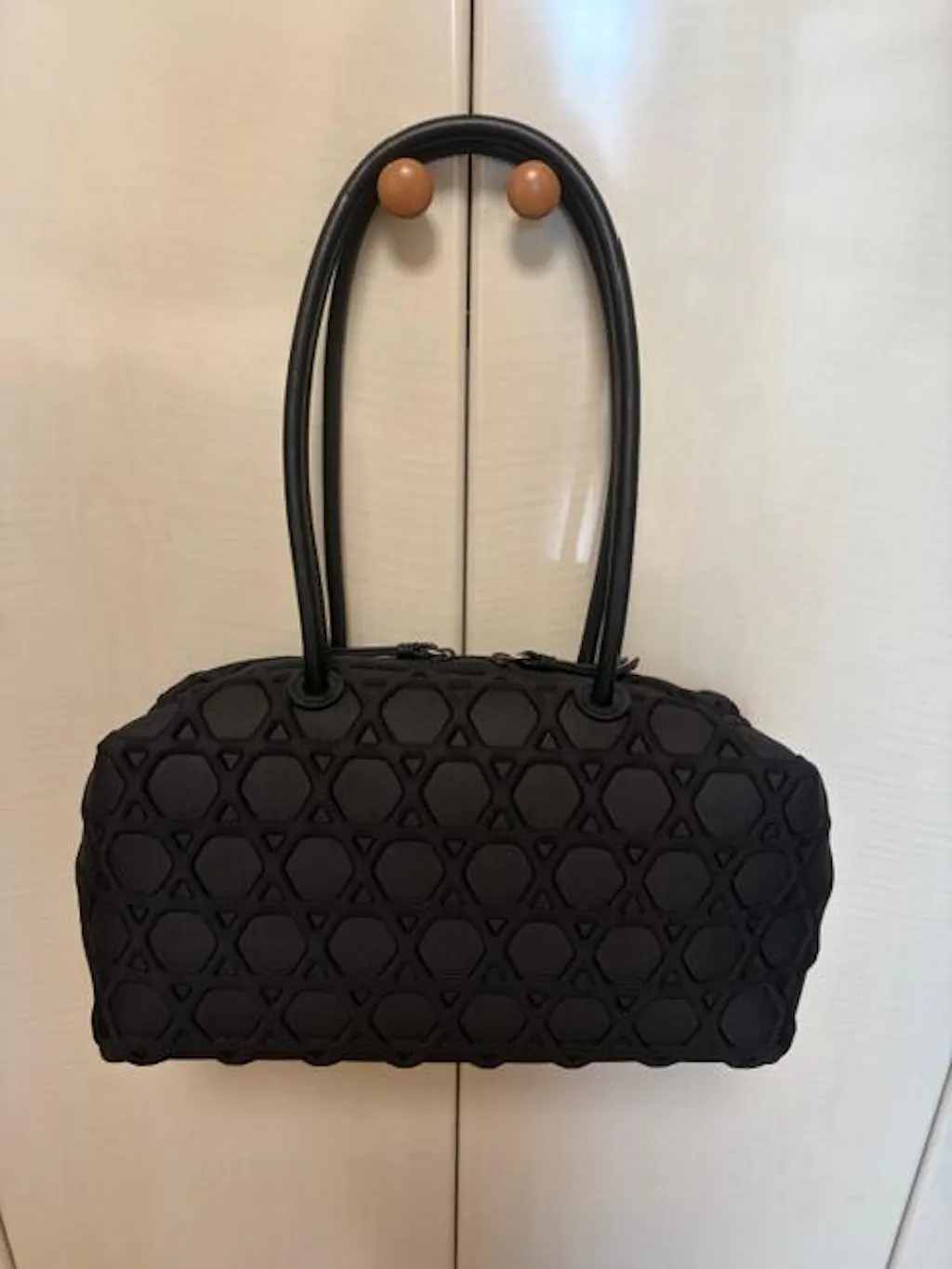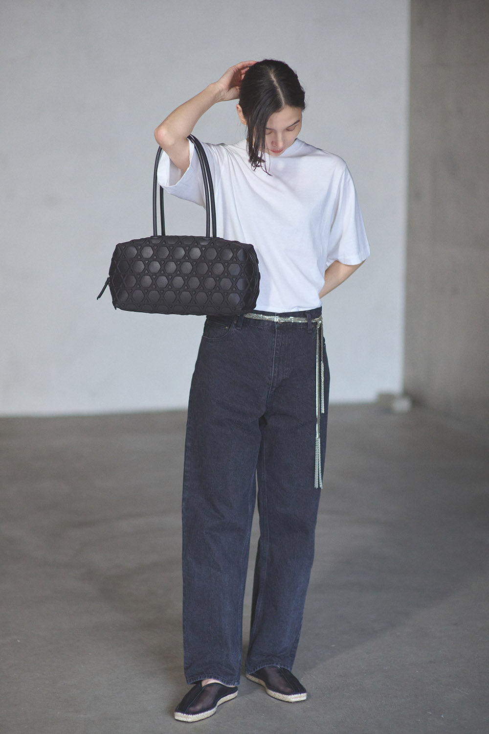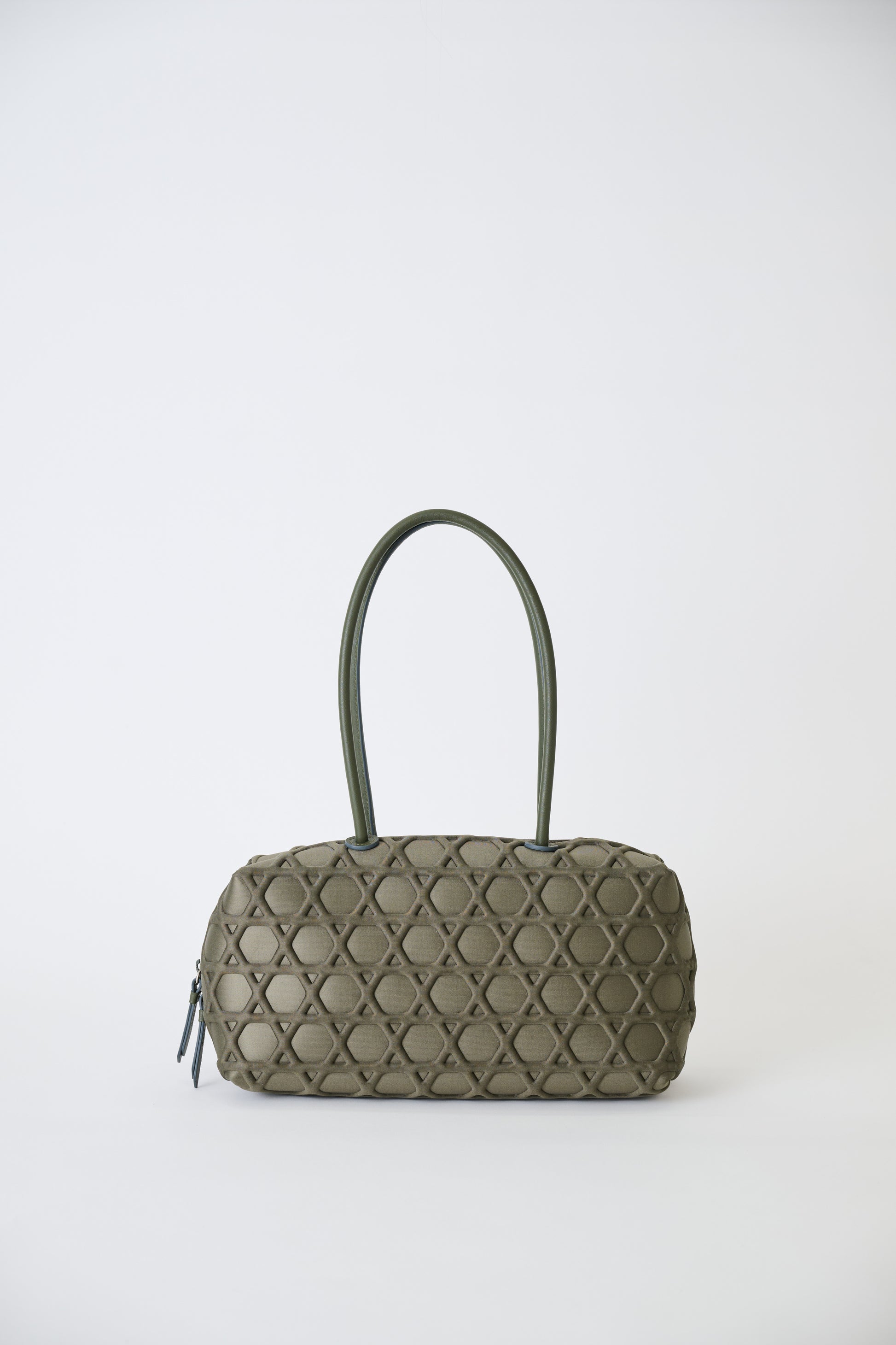 華奢なレザーハンドルは、肩掛け仕様。