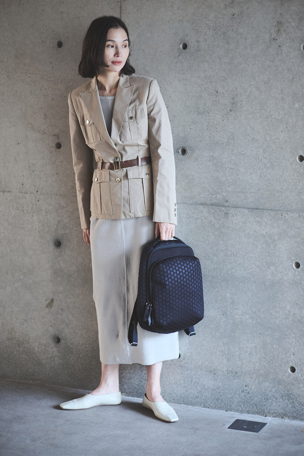 [ 生地 ]本体外側:ポリエステル、ポリウレタン、牛革/本体内側:ポリエステル