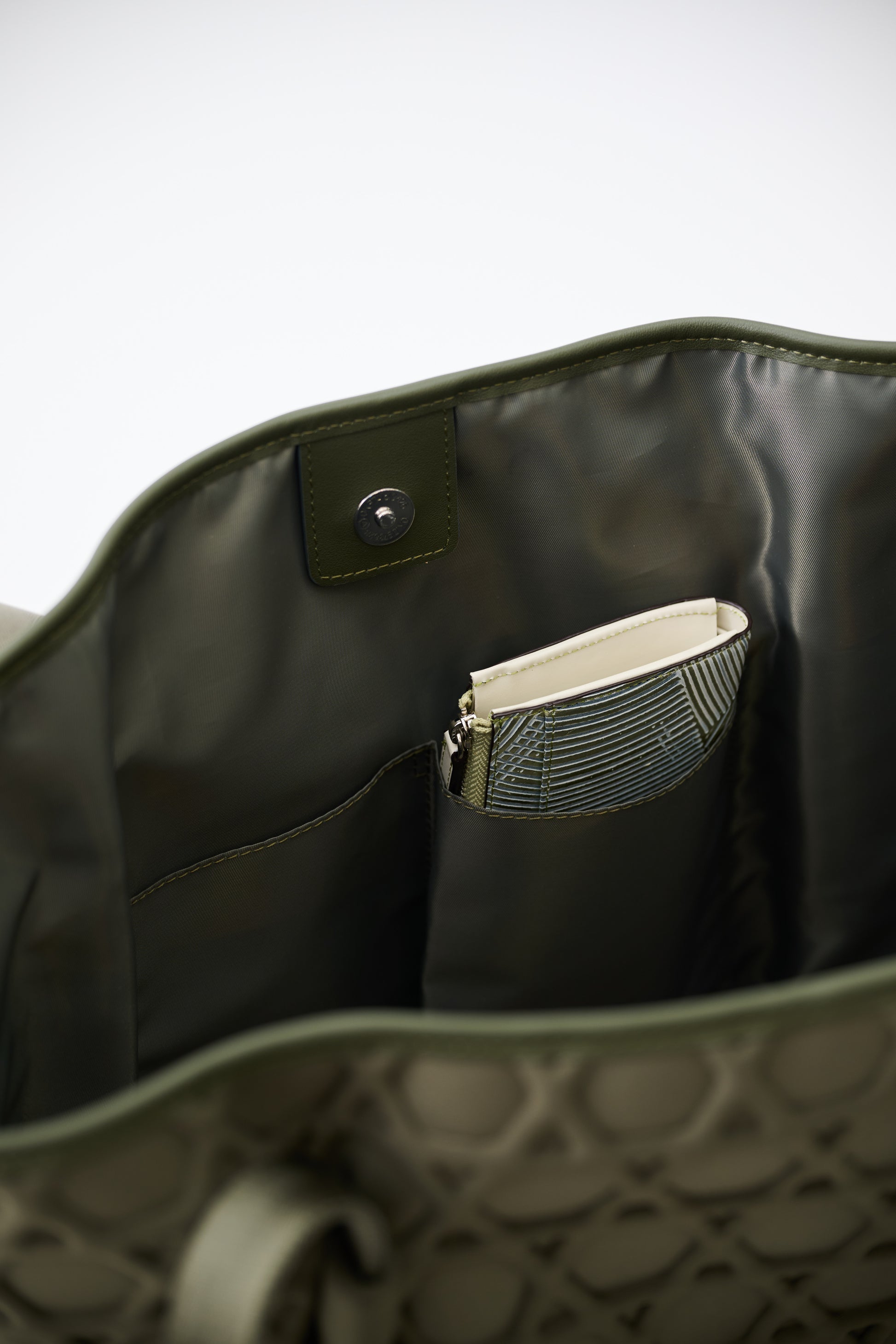 【撥水加工】籠目大柄型押し ボンディング トートL