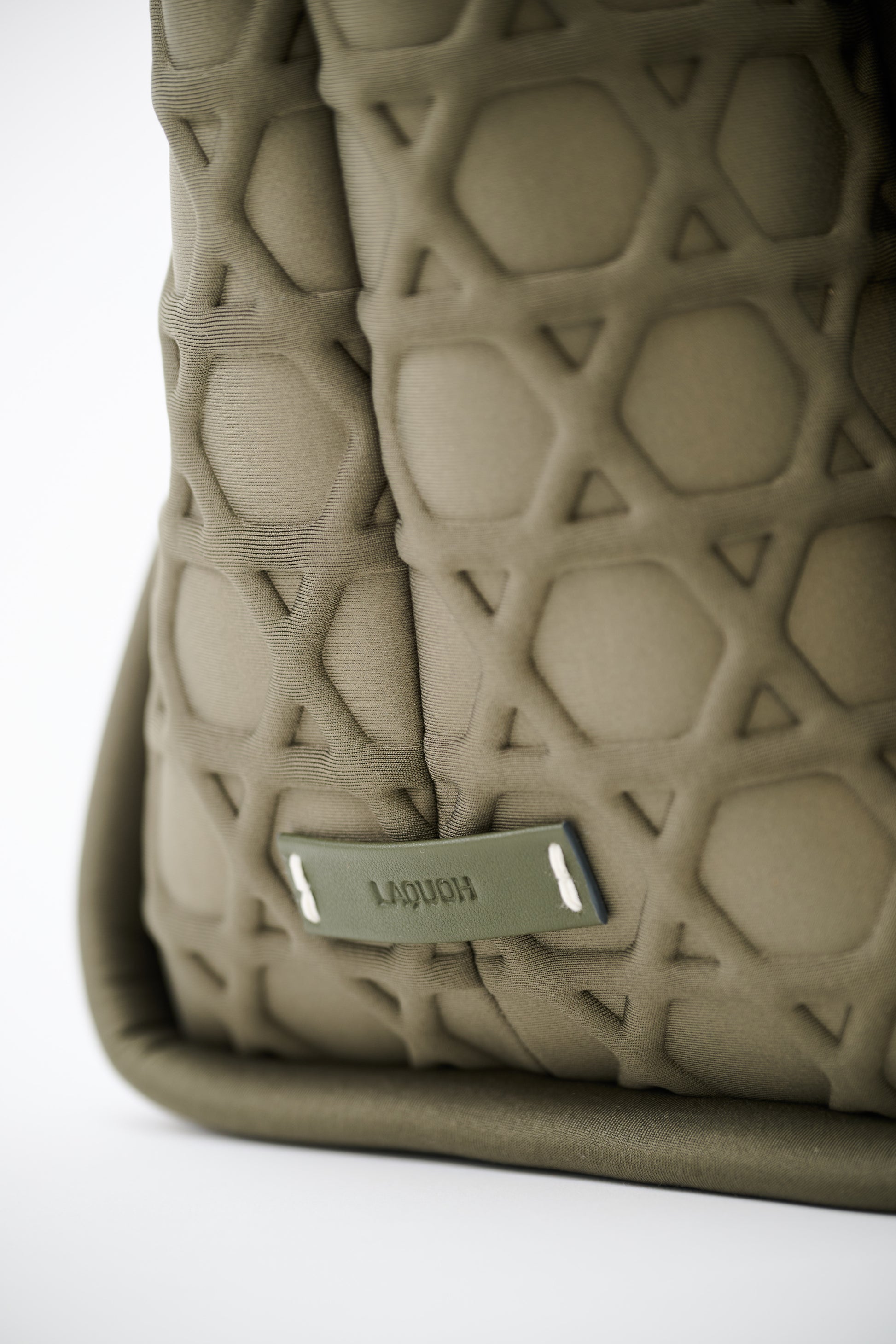 肉厚なウレタン材に施したエンボス(型押し)の篭目文様は規則的なパターンが織りなす絶え間ない連続性から、繁栄や安定、絆、繋がりを象徴しています。