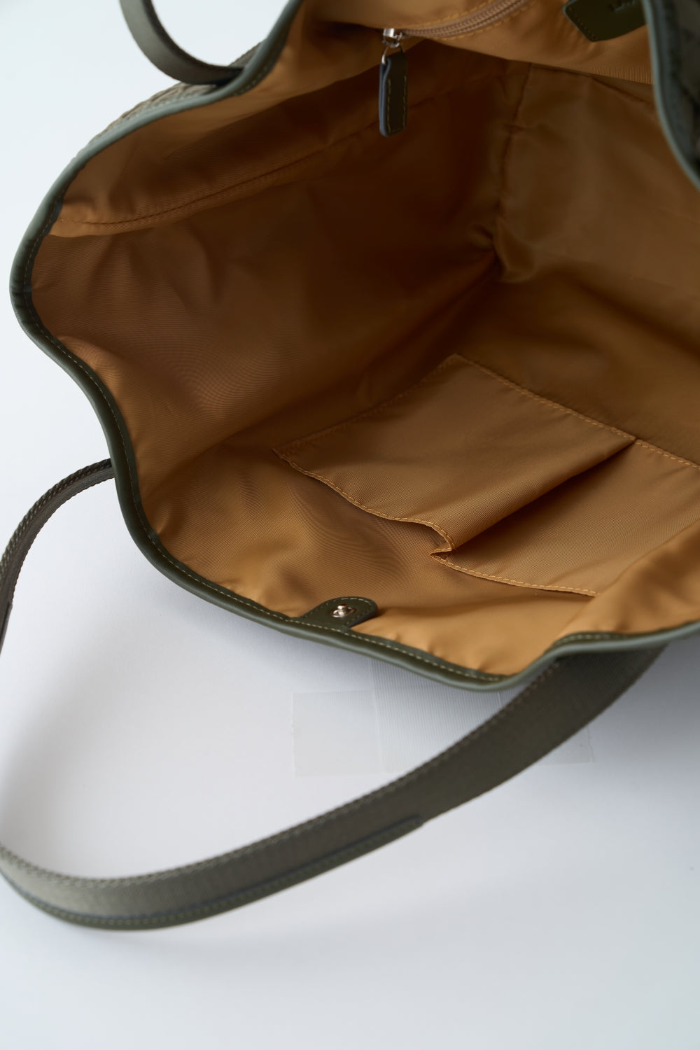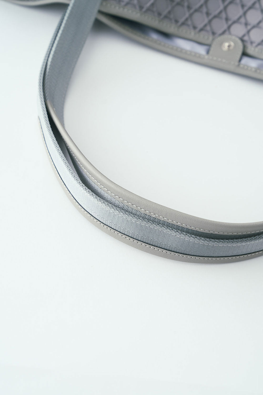 本体とマチをつなぐナイロンテープが、静かに個性を添えるアクセントに。飽きのこない佇まいに、ほんの少しの遊び心を忍ばせています。